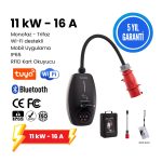 EVcharge 11 kW – 16 A Elektrikli Araç Şarj Cihazı, TYPE 2, 5 MT Kablolu, Monofaz, Trifaz, IP65, Wi-Fi, Türkçe Mobil Uygulama