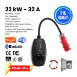22KW V3 Türkçe Mobil Uygulama 5 Yıl Garanti Taşınabilir Elektrikli Araç Şarj Cihazı (Taşıma Çantası ve 220V Dönüştürücü Priz Hediye)